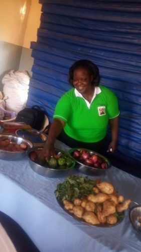 “Being an agricultural officer, I also thought I could give back to community using my profession. The area where we are there’s a lot of malnutrition and stunted growth. So I get the young mothers of reproductive age and use my profession to train them on food and nutrition using some money from my salary. I buy some food and train them and do a cooking demonstration so that young women know how to feed their children and themselves.”