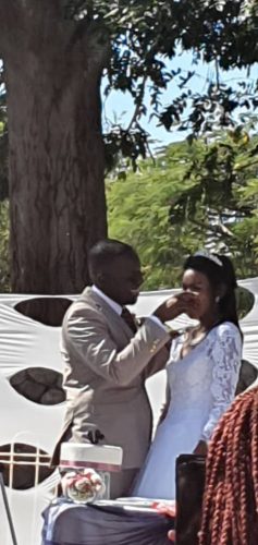 One God-sent man, Mr. Tarubinga, offered us his homestead to have a small wedding with less than 50 people. The wedding committee members assisted with their money for the wedding to be a success. It was a very small and intimate wedding. There was social distancing and sanitizers at the gate and on tables.